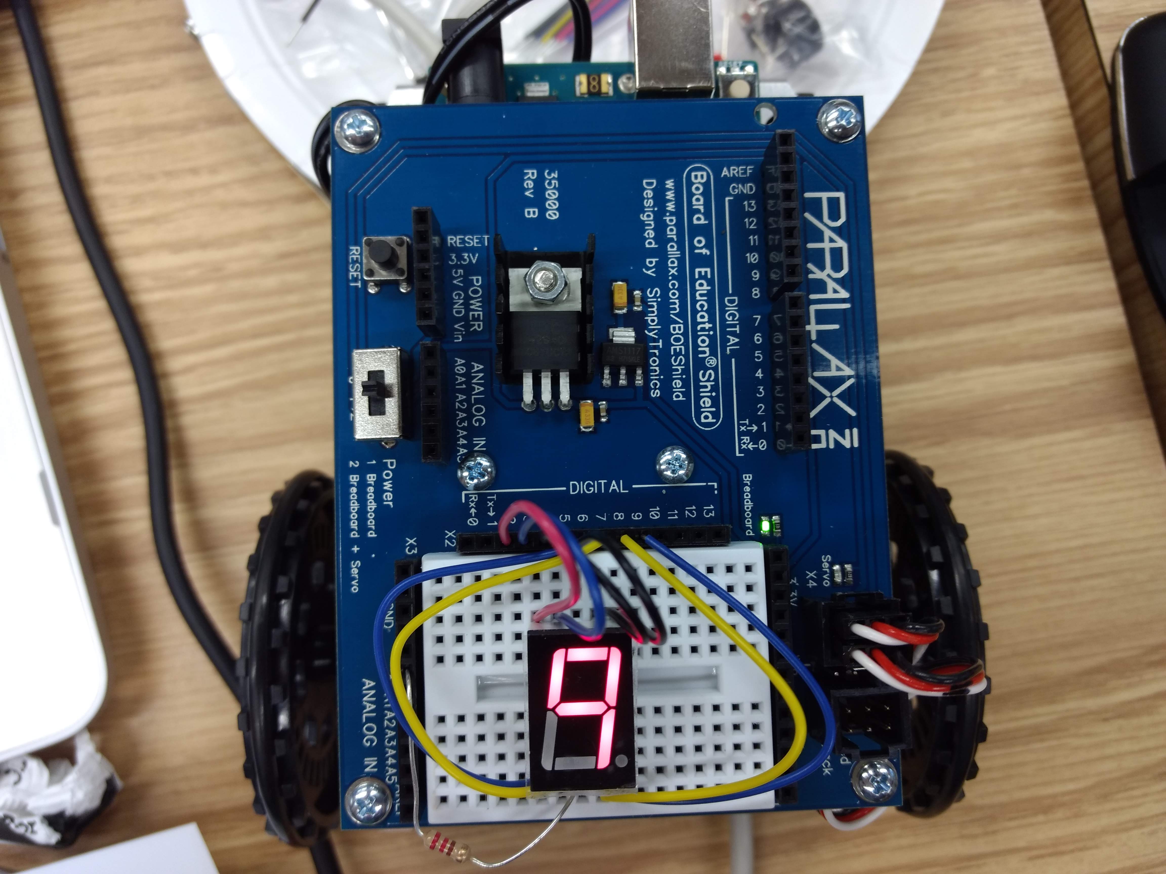 Day four and five concentrated more on the coding of the robots and the science behind infrared remote controllers that would ultimately allow us to drive our robots with a Sony TV remote. Teachers learned to program the Arduino to display numeric digits 0 through 9 in progression, learned how to get their robots to move forward, backward, turn left, and turn right, program their robots with several lines of code to run a maze, and then learned to program the robots to be able to avoid obstacles through the use of LED sensors and other sensors like those used to collect data for APRS packets. By the end of day five the participants were able to circle their robots together in the lobby of ARRL and have Tommy use one Sony remote to orchestrate the robots doing the Hokey Pokey.