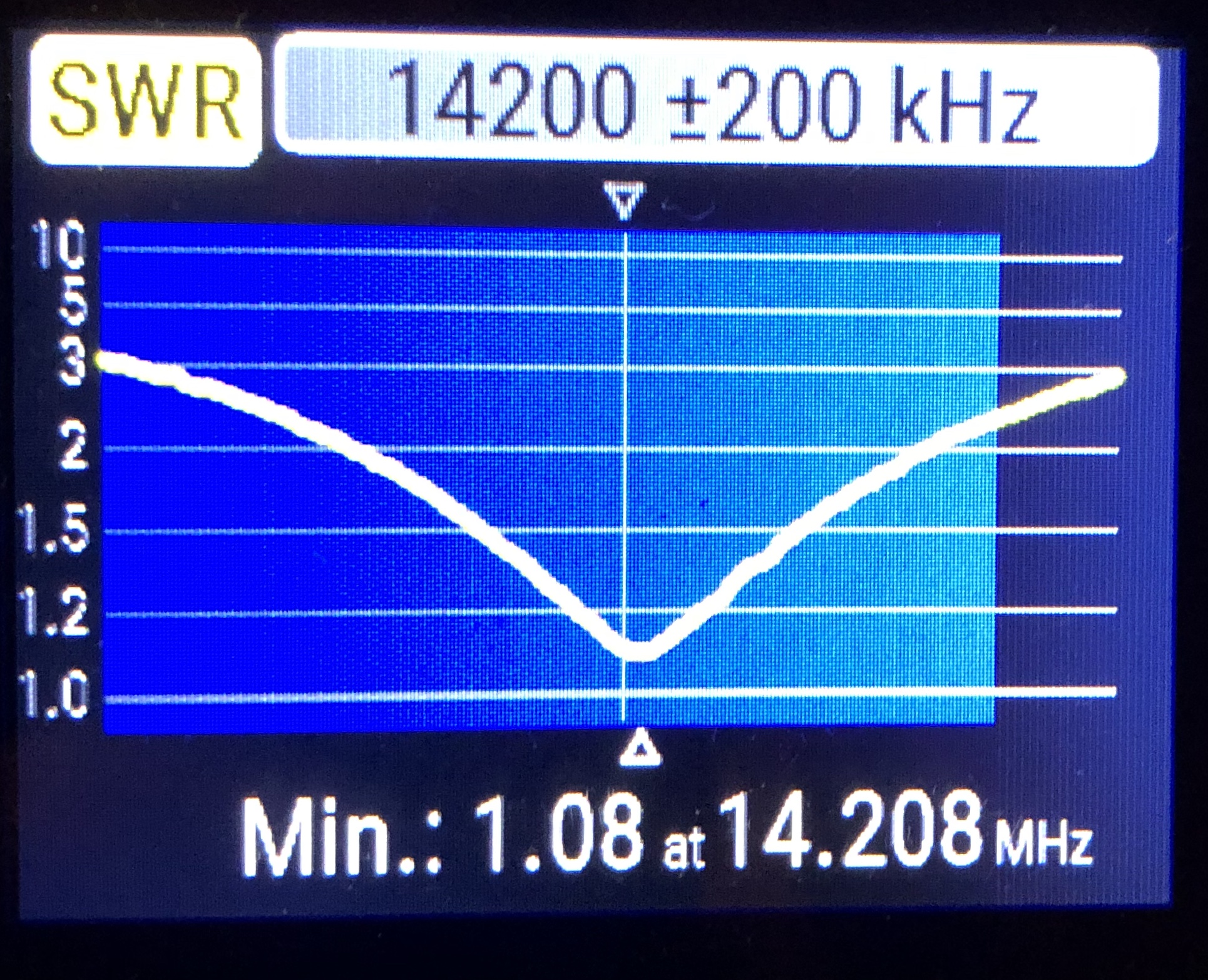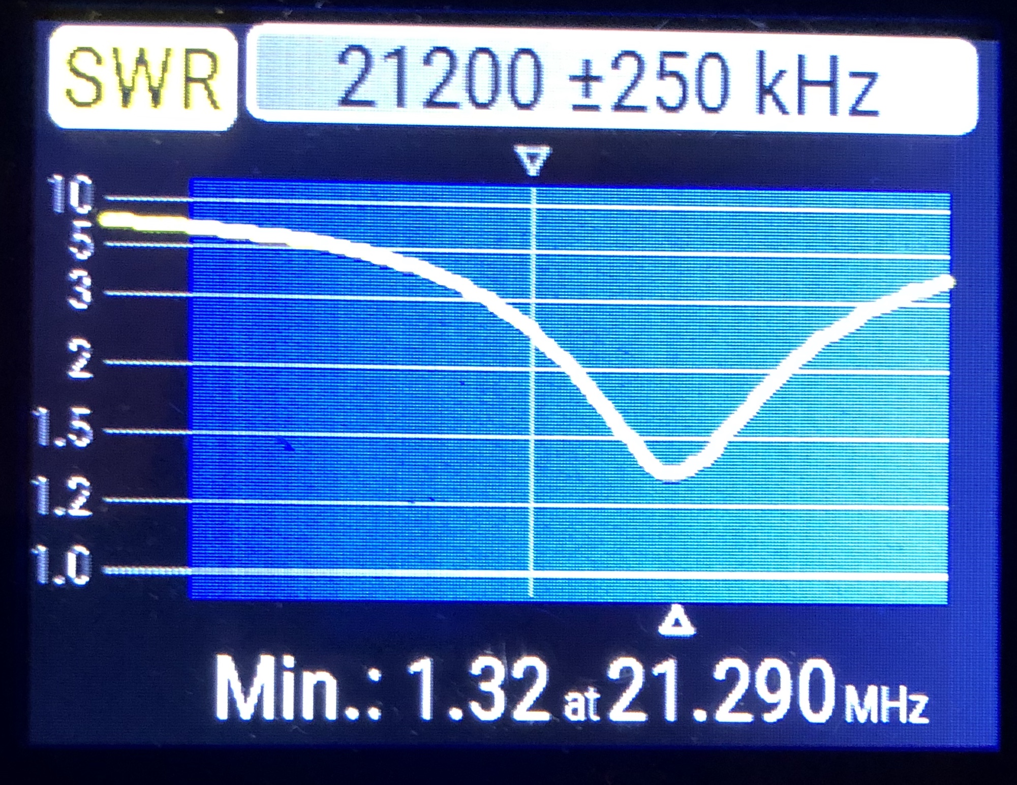 I confess that I could probably do better on all bands except 20m if I were to spend more time adjusting the wires. But this is good enough for now.