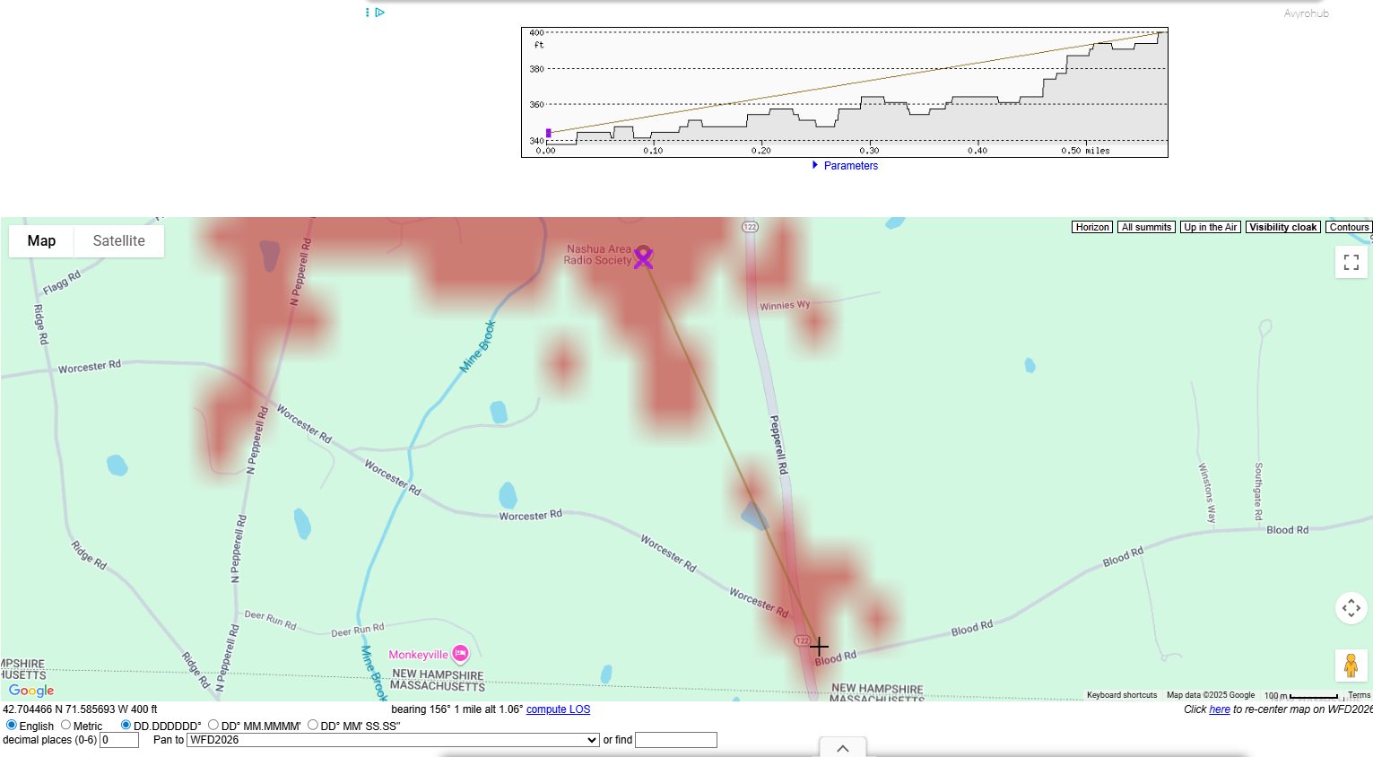 Then we used the HeyWhatsThat website to generate ideas for where we could get a signal based on the topology.