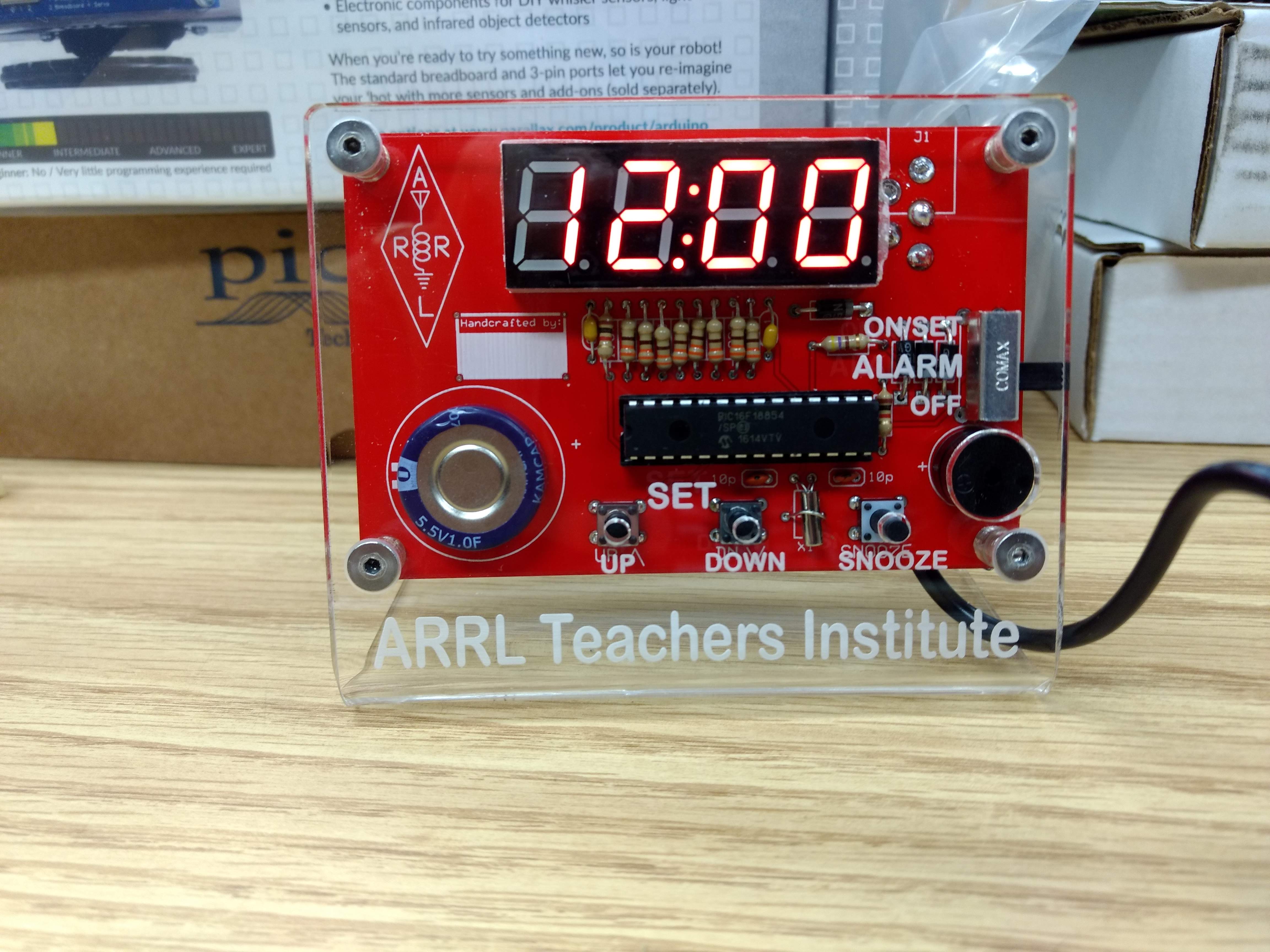 By midway through the first day of the institute we were already delving deep into the educational context for wireless technology, basic electronics, and soldering. While I had some experience in these areas with my work in Amateur Radio and my experience at Space Camp the summer prior, this was just as exciting as experiencing it for the first time. We opened our new Breadboard, connecting a circuit filled with wires, resistors, and LEDs, to help us understand the functions of our new Multimeter. By the end of day one we opened our ARRL designed clock kits to accomplish our first task. We were tasked with putting together the components of the clock from a kit and soldering the back of each piece. This was supposed to become homework, but all participants were so excited to be working on this project that we all stayed at ARRL an extra two hours that night to complete our clocks. The next morning, we were able to put the finishing touches of the base on the clock and plug them in to see that they worked.