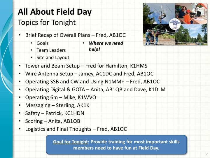 Field Day Tech Night Topics[/caption]