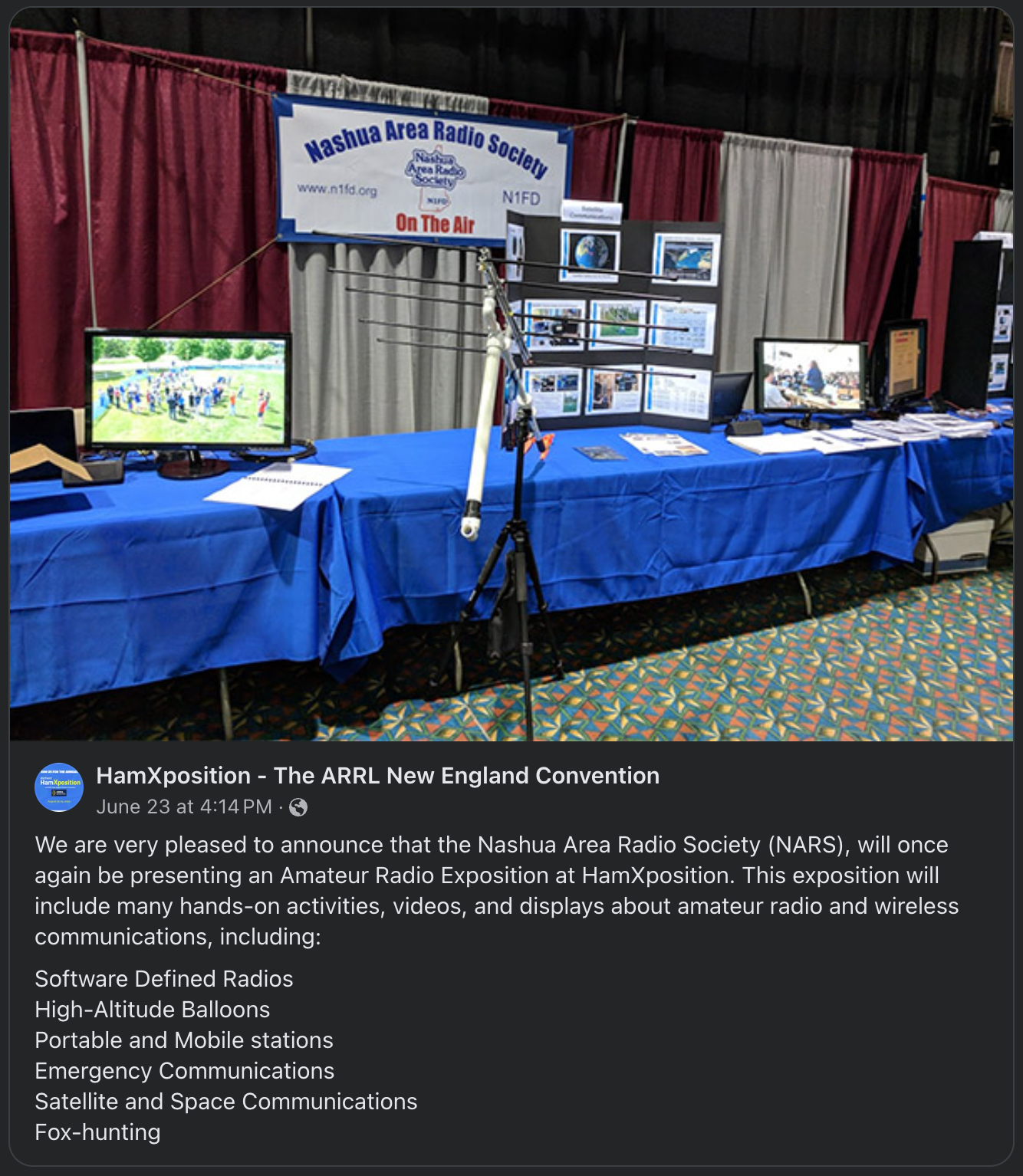 NARS will be hosting our Amateur Radio Exposition display at HamXposition in Marlborough, MA on August 22-25.