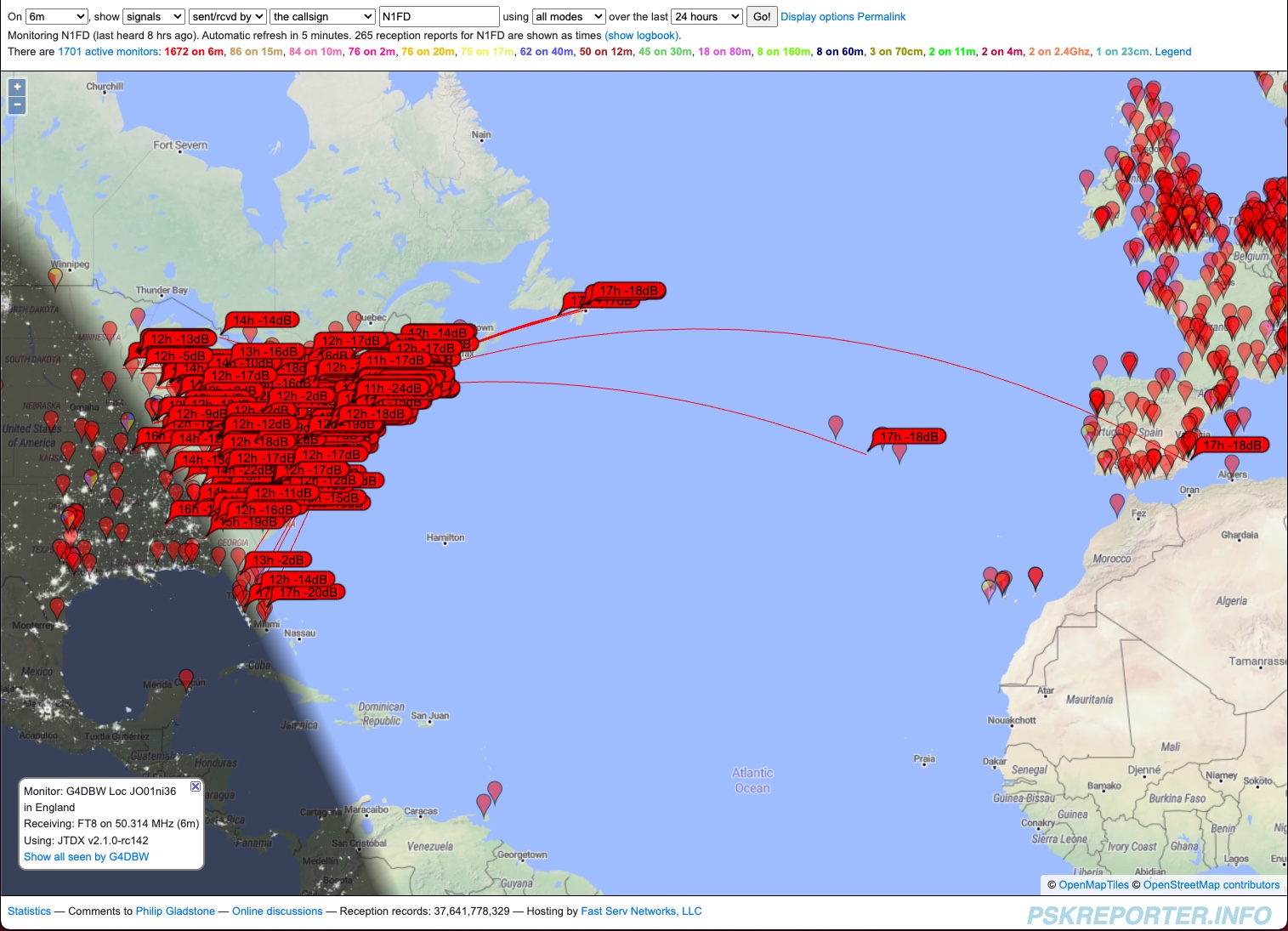 It looks like the NARS 6m Field Day Station is doing a good job. There was likely a good opening on 6m around 6:30 pm on Saturday evening. I hope folks had a chance to work this one!