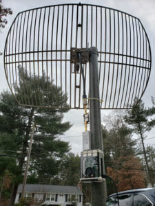 It consists of a 2.4GHz Wi-Fi Grid Parabolic Antenna with a simple mod to the feed to get it working around 1.7GHz, GOES LNA/SAW-filter module, SDR dongle, and a Raspberry Pi 3B+. I discovered a RasPi Zero will not work on this setup; the chipset is not compatible with the GOESTOOLS code.